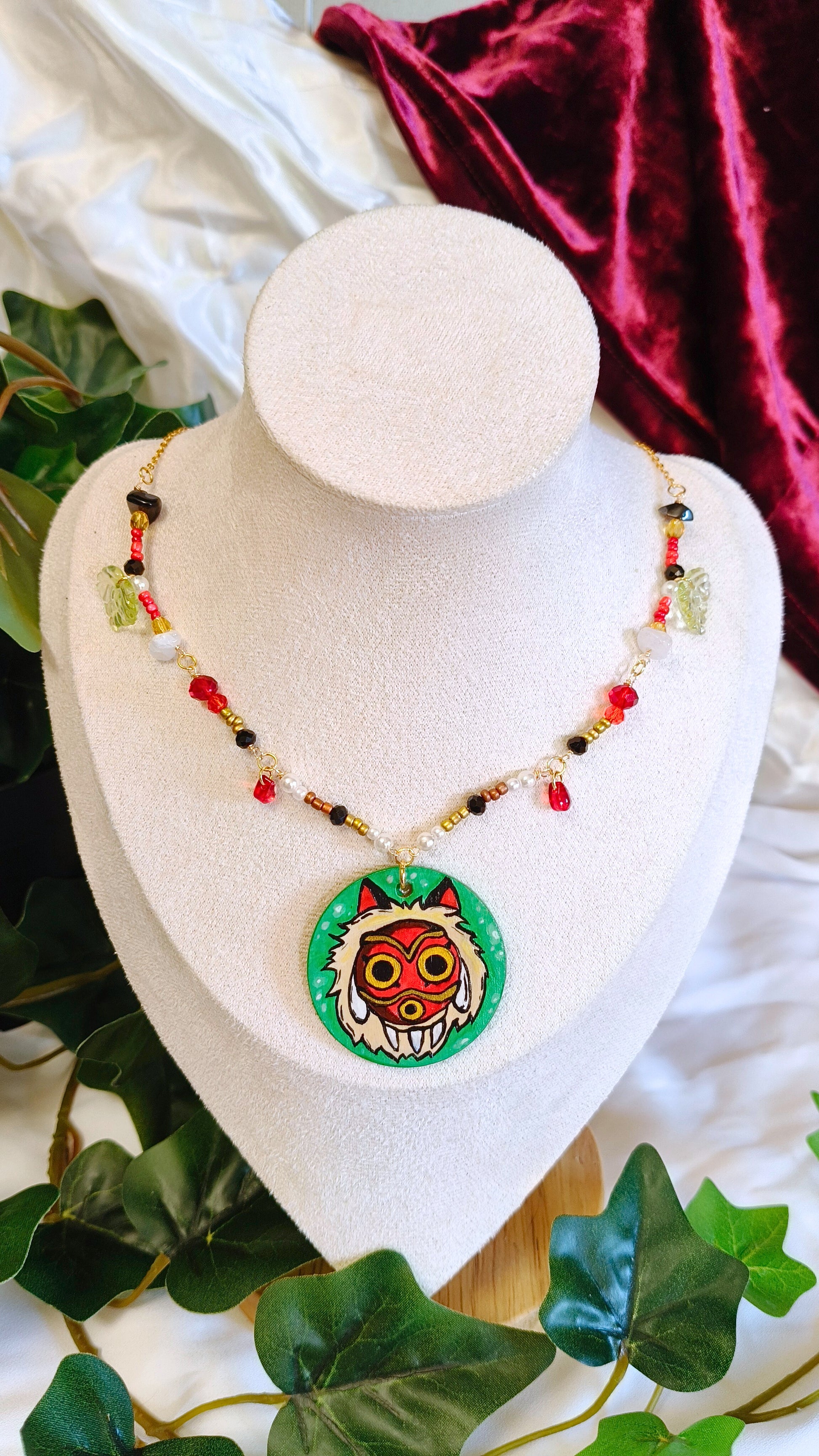 La collana raffigura sul pendente la maschera di San, la principessa Mononoke.