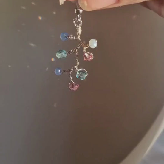 Gli orecchini Driade sono impreziositi da gemme colorate, che fanno da punto luce e rappresentano la rigogliosità dei boccioli dei fiori, legati al pendente a forma di ramo.